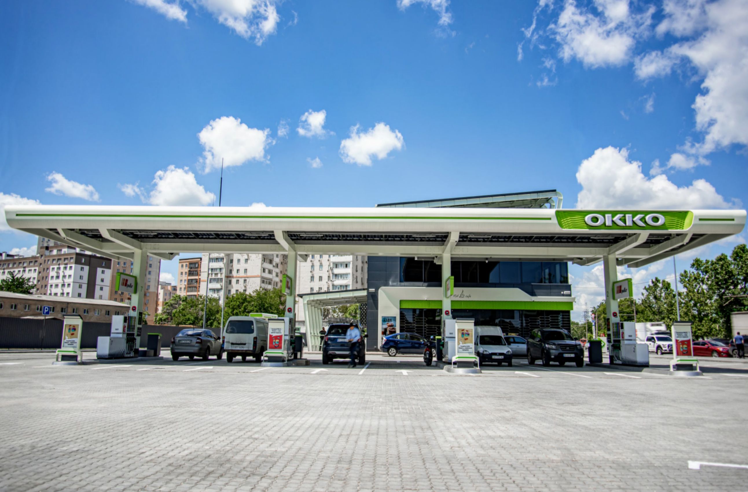 Сеть АЗК ОККО открыла в Одессе, по адресу – ул. Пестеля, 2А, новый автозаправочный комплекс, чья архитектурно-инженерная конструкция не имеет аналогов в Украине. Роль покрытия над операторной, летней террасой, навесом над зоной топливно-раздаточных колонок и переходным навесом играют солнечные панели. Ожидается, что благодаря такому решению АЗК будет покрывать до 70% своих потребностей в электроэнергии за счет собственной генерации, а в наиболее солнечные месяцы даже сможет обеспечивать себя электроэнергией полностью. Об этом сообщили в компании.