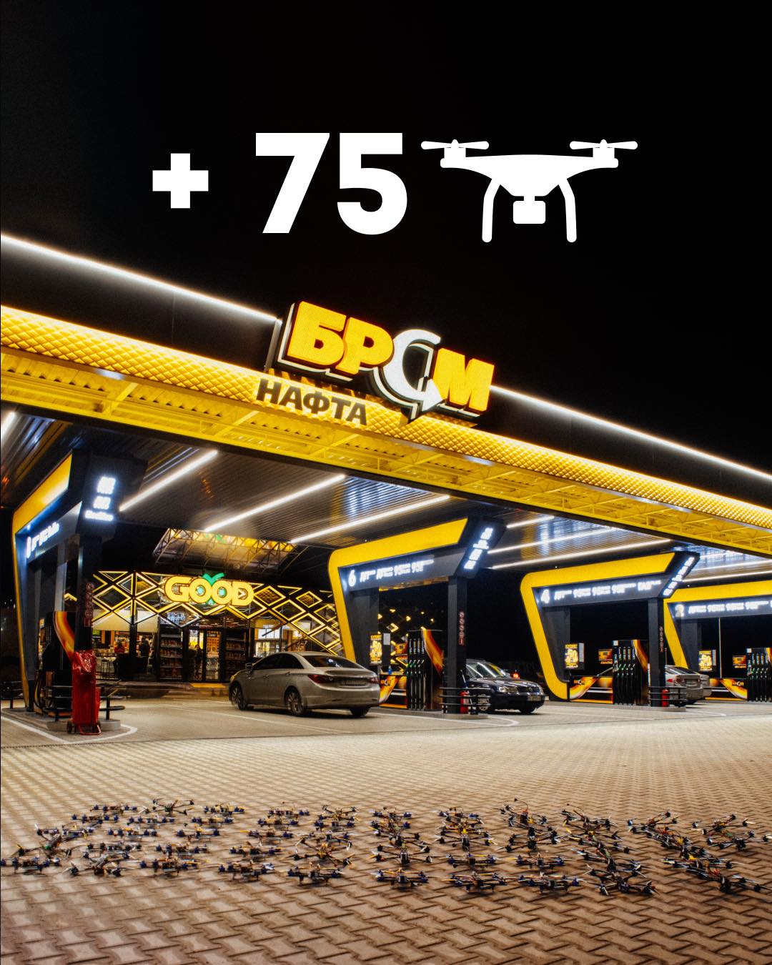 Мережа «БРСМ-Нафта» передала 75 дронів-камікадзе Силам оборони України. Про це компанія повідомила на своїй сторінці у FaceBook.