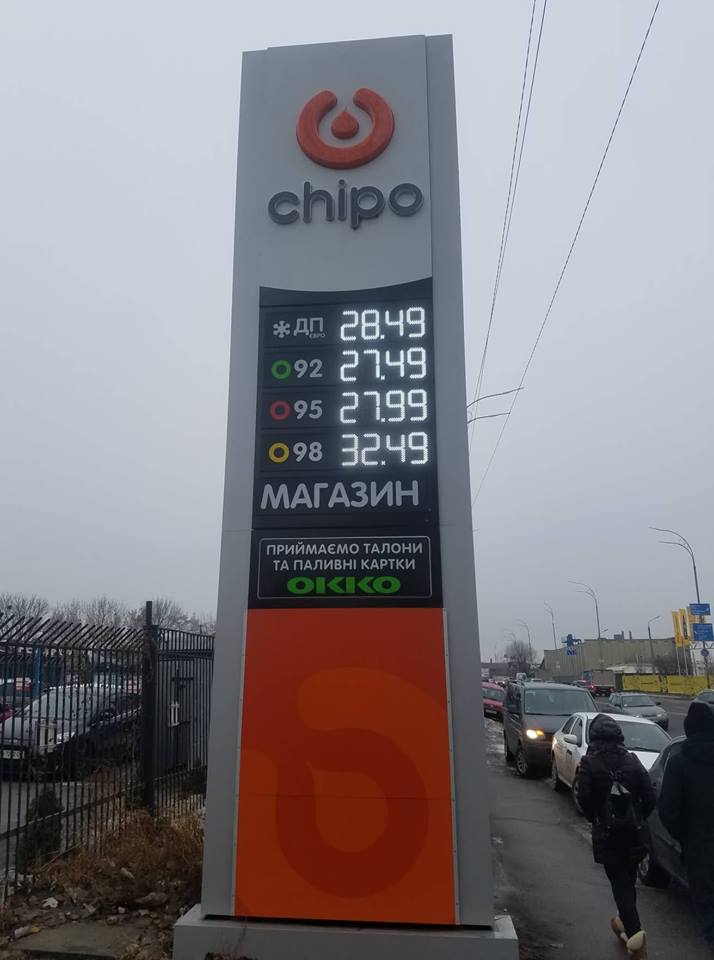 На станциях оператора KLO цены снизили на 20-90 коп./л, до: А-92 – 30,59 грн/л, А-95 – 30,99 грн/л, ДТ – 30,99 грн/л. На Shell цены уменьшились на 30-50 коп./л, до А-92 – 30,49 грн/л, А-95 – 32,29 грн/л, ДТ – 31,79 грн/л. На столичных АЗС AMIС цены упали на 2-2,2 грн/л, до А-92 – 29,29 грн/л, А-95 – 30,29 грн/л, ДТ – 29,79 грн/л.