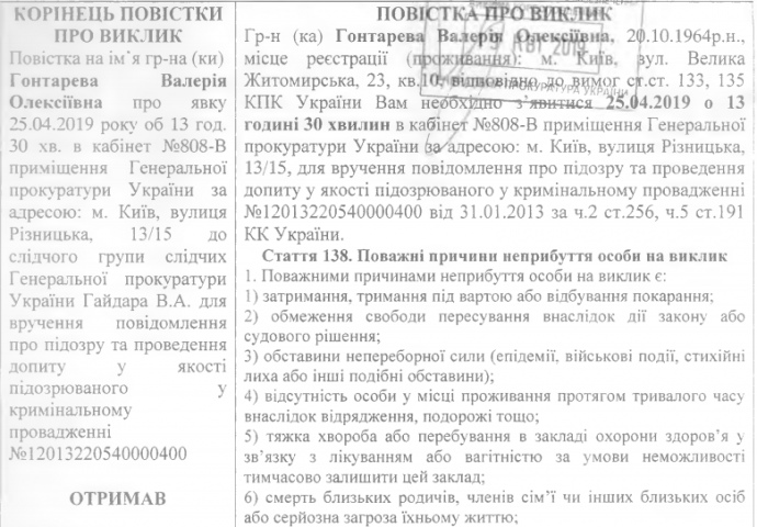Об этом сообщает УП со ссылкой на повестки ГПУ.