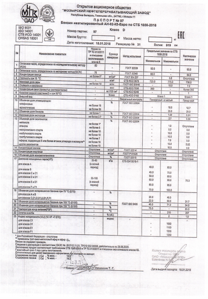 Продажа ресурса осуществляется при 100%-й предоплате, стартовая стоимость бензина составляет 32 140 грн/т. Условия поставки: самовывоз автотранспортом с нефтебазы в пгт. Подволочиск (Тернопольская обл.) в течение 15-30 марта 2018 года.