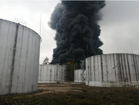 3 березня близько 08:10 у м. Чернігові по вул. Чудінова на території ДП «Комбінат Айстра» під час обстрілу сталося попадання снаряду в нафтобазу, внаслідок чого сталося загорання резервуарної групи загальною ємністю 3 тис. м куб. дизельного пального.