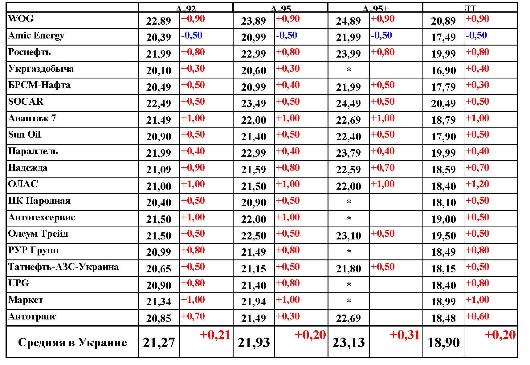 Таким образом, по состоянию на 18 мая, среднеукраинская цена на бензины и ДТ выросла на 20-31 коп./л. и достигла 21,27 грн/л для А-92, 21,93 грн/л для А-95, 23,13 грн/л для А-95 Премиум и 18,90 грн/л для ДТ.