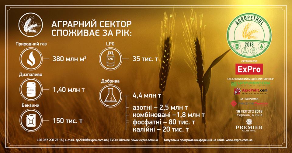 16 февраля в Киеве впервые в Украине состоится семинар-конференция AGROPETROL 2018. Организатор мероприятия консалтинговая компания EXPRO при поддержке отраслевых изданий - НефтеРынок, latifundist.com и agropolit.com.
