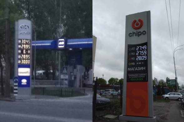 Например, на АЗС ANP, «Авиас» и других станциях сетей контролируемых ГК «Приват», 27 апреля, цены на бензин и дизельное топливо выросли на 50 коп./л. Также, цены выросли на АЗС сети UKRNAFTA. В результате стоимость в крупнейшем объединении сетей в Украине установилась на уровне: А-92 – 28,95 грн/л (на 5 коп./л выше на АЗС UKRNAFTA – 29 грн/л) , А-95 – 29,95 грн/л (30 грн/л), А-95 Energy – 30,45 грн/л (30,50 грн/л), ДТ – 30 грн/л.