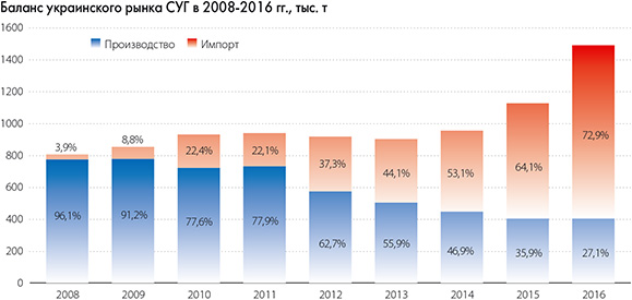 Растущие объемы рынка компенсировались прежде всего импортом. Впервые Украина импортировала сжиженный газ в небольших объемах (около 7,8 тыс. т) в 2006 году. Существенное увеличение произошло в 2010 году, когда в адрес украинских компаний поступило около 242 тыс.т. Как следствие, буквально за несколько лет Украина превратилась в страну, которая более чем на 70% зависит от иностранного СУГ. В связи с бурным ростом и нехваткой собственных производственных мощностей она уже превратилась в премиальный рынок для экспортеров, как это случилось ранее с отечественным рынком бензинов и дизтоплива.