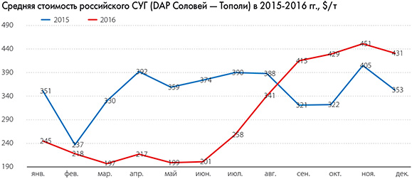 В ушедшем году рынок пережил одно из важных событий, расширив номенклатуру поставок за счет танкерных объемов. Постоянная угроза дефицита и, как следствие, рост цен стали неизменными пунктами повестки дня газовых трейдеров. Именно с 2016 года все отчетливее стала вырисовываться необходимость поиска альтернативных поставок газа из Европы и стран Средиземноморского бассейна. Ранее участников рынка от импорта в газовозах-танкерах удерживала экономическая составляющая. Ведь стоимость импорта по морю в сравнении с сухопутными поставками была выше. Однако на пике цен в сентябре-октябре импорт сжиженного газа морским путем стал экономически обоснованным. К примеру, в сравнении с началом лета 2016 года к осени цены на газовозные партии выросли почти на 126%.