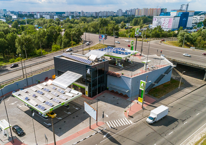 У Києві на перетині вулиць Лугової та Богатирської (Оболонь) мережа ОККО відкрила найвищий в Україні 2-рівневий автозаправний комплекс з 3-поверховою будівлею операторної.