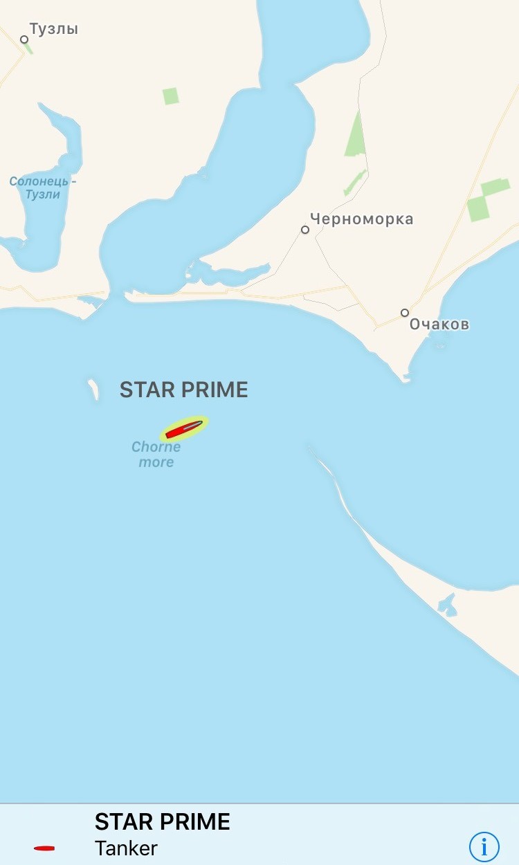 Біля порту Очакова стоїть танкер Star Prime (колишній Ocean Prime, обсяг 1,6 тис. т), який ходить під прапором Коморських островів. За даними навігаційного сервісу Marinetraffic танкер класу річка-море був завантажений газом на терміналі «мактр Нафта» в порту Темрюка (Російська Федерація). Фактурна вартість LPG по базису CIF Очаків склала $ 480/т.