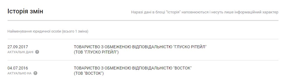 ТОВ «ВОСТОК» (код ЄДРПОУ 24812228) було перейменовано на ТОВ «Глуско Рітейл».