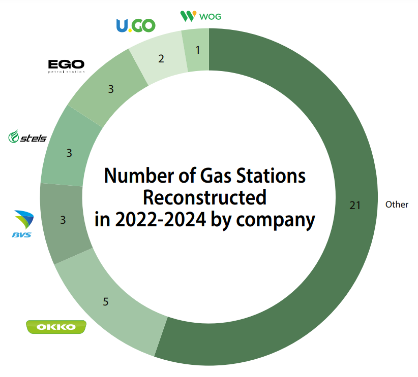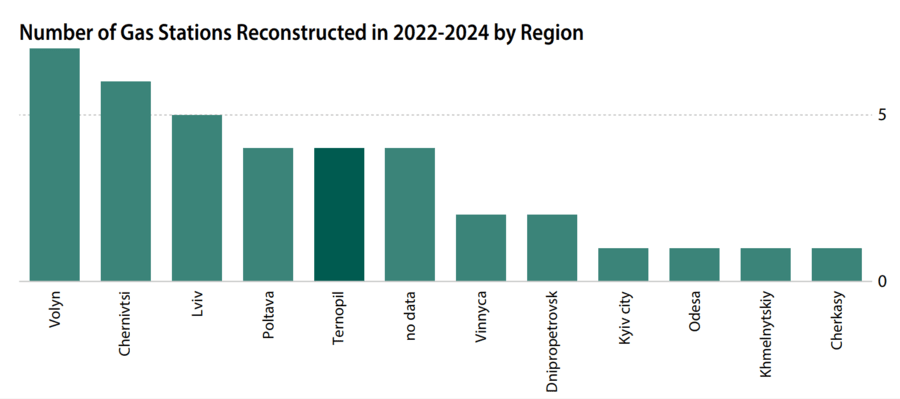 The biggest number of stations was reconstructed in the Volyn region (7 gas stations). It is followed by the Chernivtsi (6 gas stations) and Lviv (5 gas stations) regions. Besides, four projects were published without indicating the implementation site (two of them belong to JSC "Ukrgazvydobuvannya"). It should be noted that these statistics do not cover all the infrastructure projects that actually had been implemented during the specified time: the official registration of some of them dates either to an earlier period, or, as is often the case, to the day of actual implementation.
