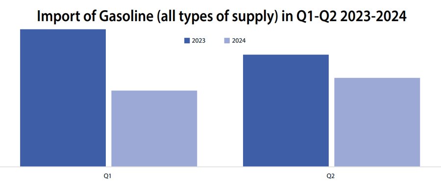 However, the second quarter saw a 16.7% increase in gasoline imports from the first quarter, reaching 273,800 tons, due to anticipated fuel excise tax hikes.