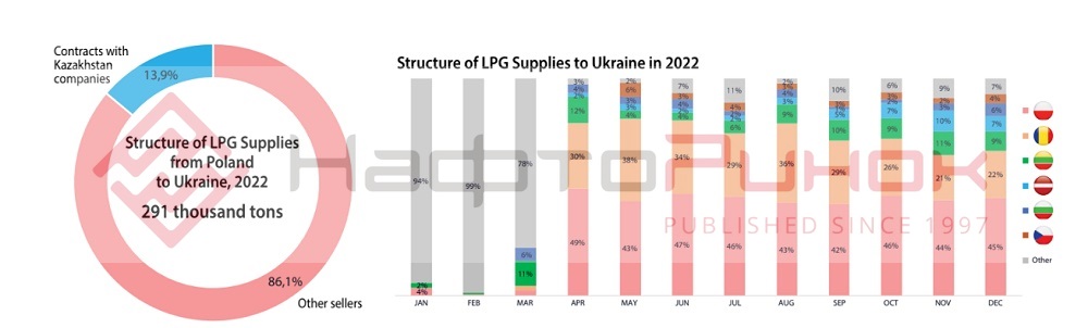 Interestingly that despite the total amount of railway deliveries of LPG from Kazakhstan to Poland in 2022, 86 thousand tons, the Ukrainian importers registered 119 thousand tons of LPG as gas of Kazakh origin when crossing the border (this is 40% of deliveries from Poland, including road imports). At the same time, at least 31,000 tons out of 86,000 tons of railway deliveries to Poland were contracted from Kazakh traders by Ukrainian companies, and were redirected for transshipment to Ukraine.