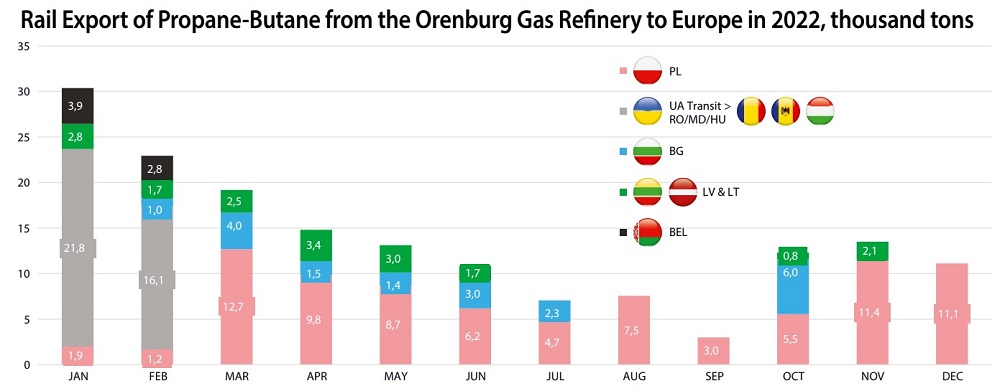 This explains the unwillingness of the Polish Customs to resolve the scheme for re-export of the Orenburg refinery’s resource to Ukraine, in case there are documents issued by Kazakh authorities on the origin of the LPG. According to NaftoRynok, such supplies could account for up to 18% of LPG imports from Poland in 2022.