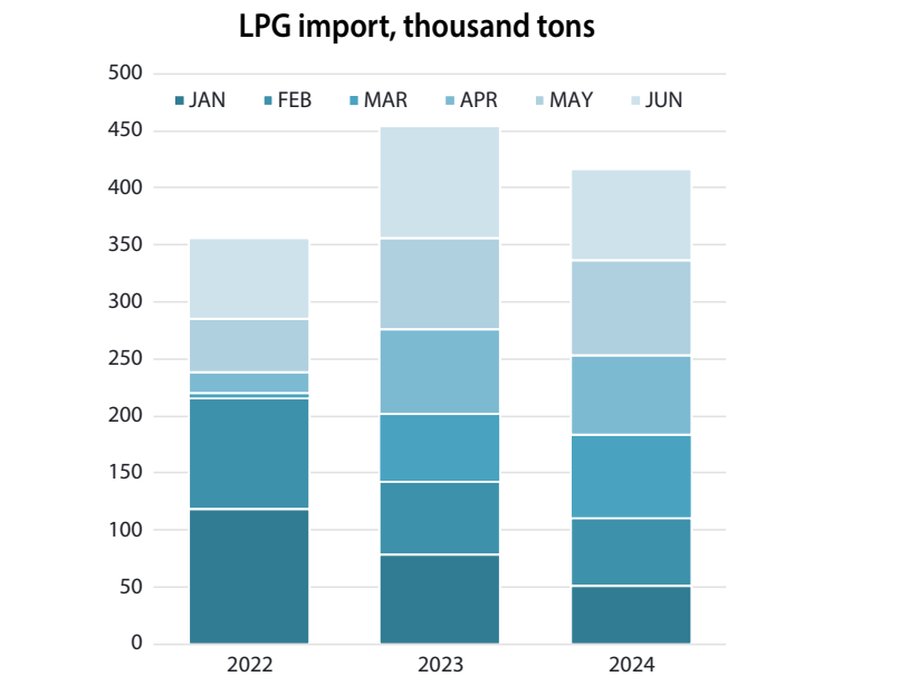 In the first half of 2024, Ukraine cut LPG imports by 8.4%, totaling 415,900 tons. This is reported in the June 2024 issue of NaftoRynok Monthly Fuels & LPG.