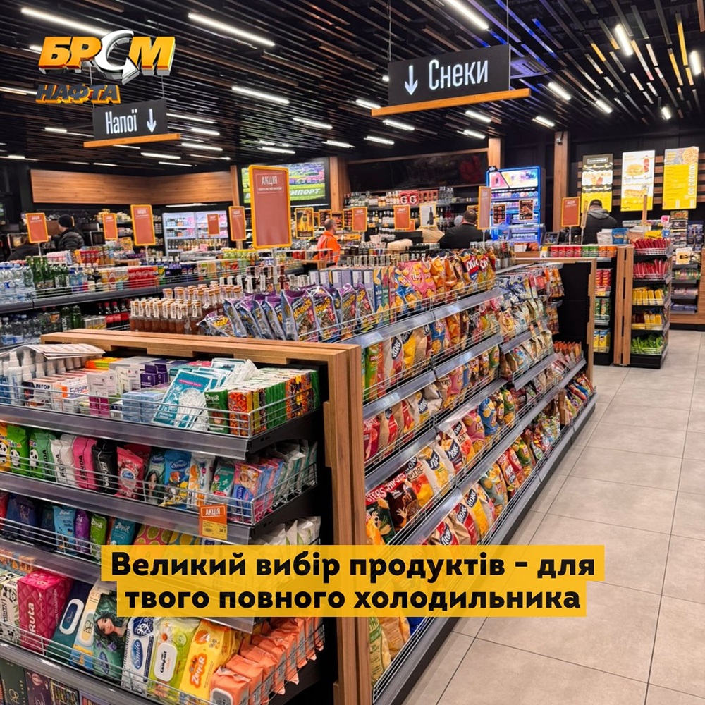 На АЗС представлено широкий вибір їжі, включаючи свіжу піцу, традиційні хот-доги та бургери.