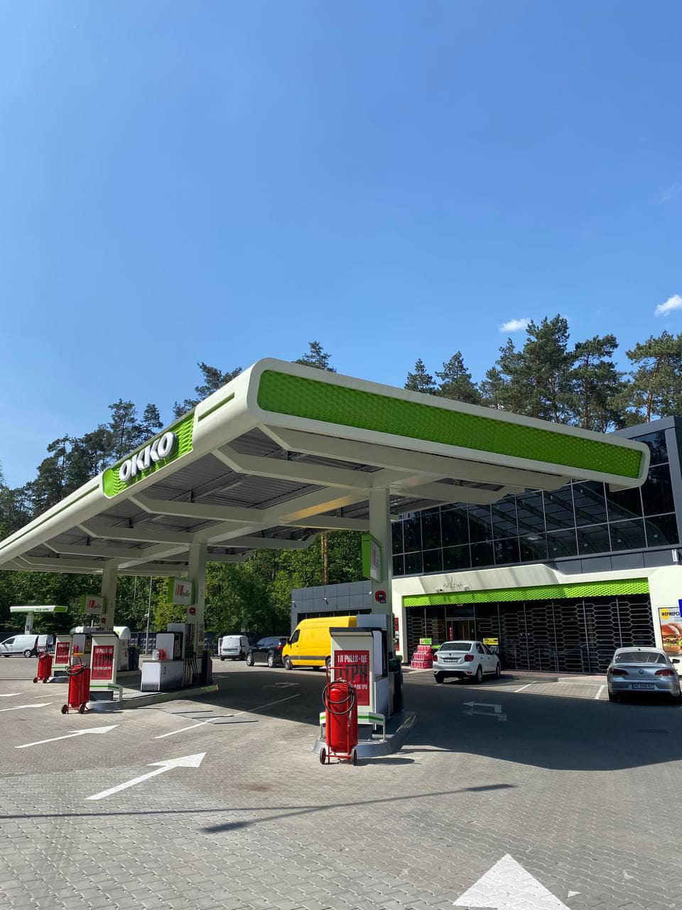 У квітні OKKO повідомила, що відремонтувала АЗК на трасі Миколаїв-Херсон, який постраждав від бойових дій та мародерства.