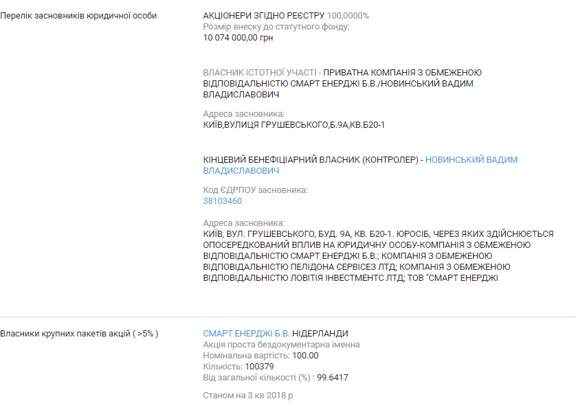 Добавим, что на сегодняшний день ЧАО «Укргазвыдобуток», входит в промышленную группу компаний «Смарт-Холдинг» - конечным бенефициаром является нардеп Верховной Рады Украины Вадим Новинский. Руководителем общества является Махновец Владимир Петрович. Уставный капитал составляет 10,074 млн грн, а самый крупный пакет акций имеет нидерландский резидент группы «Смарт-Холдинг» - СМАРТ ЭНЕРДЖИ Б.В., обладающее 99,64% пакетом акций (100 379 шт. номинальной стоимостью 100 грн.)