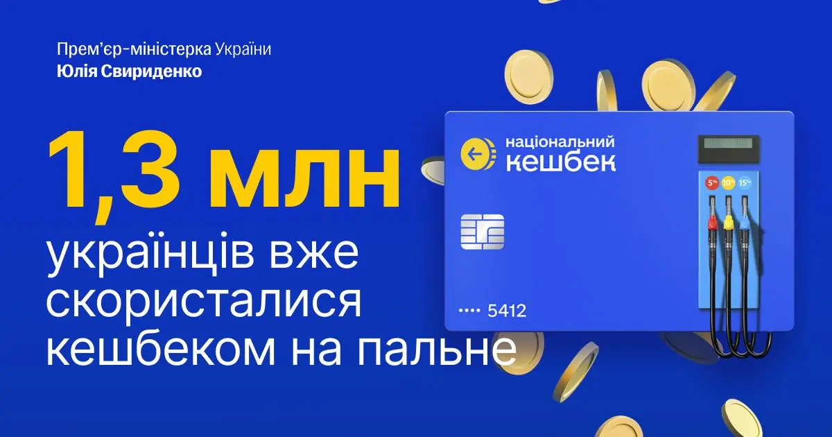 Вже 1,3 млн українців скористалися урядовою програмою компенсації витрат на пальне, що дозволяє отримувати до 1000 грн на місяць. Про це повідомила прем’єр-міністерка Юлія Свириденко.