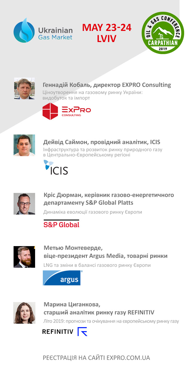 EXPRO Consulting - организатор международного мероприятия Сarpathian Oil & Gas Conference 2019 23-24 мая во Львове собирает ведущие добывающие, буровые и сервисные компании, представителей государственных организаций, газовых трейдеров и аналитические компании Украины и Европы. В частности второй день конференции 24 мая будет посвящен функционированию и развитию украинского и европейского рынков природного газа. НефтеРынок выступает медиапартнером международного мероприятия.