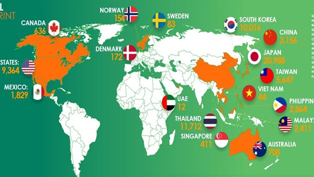 Сеть магазинов 7-Eleven, Inc. достигла важного рубежа роста, превысив 70 000 торговых точек в мире. Покупатели могут посетить крупнейшую в мире торговую сеть в 17 странах и регионах по всему миру. Ожидается, что в этом году откроется первый магазин 7-Eleven в Индии, который расширит деятельность компании до 18 стран.