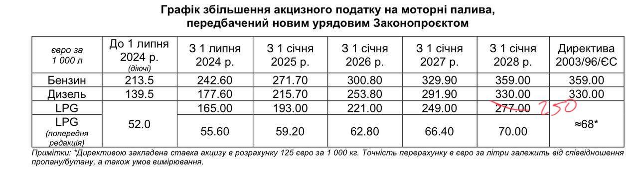 За словами Железняка, комітет вніс деякі зміни в документ, який Рада сзвалила у першому читанні. Зокрема, підвищено ставки акцизу на скраплений газ. З 2028-го року вона становитиме €250 за 1 тис. літрів.