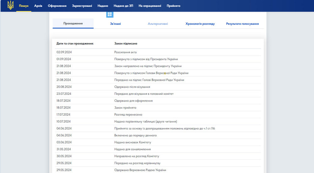 На сайті ВРУ зазначається, що 21 серпня 2024 року закон було направлено на підпис Президенту, але він не підписав його до 1 вересня, коли мали запрацювати нові ставки акцизів на пальне.