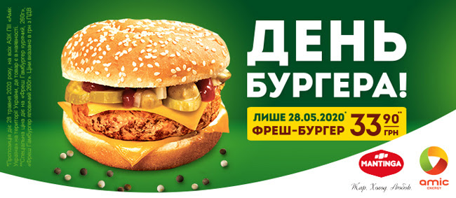 Предложение действует 28 мая 2020, на всех АЗК «Амик Украина» на территории Украины, где товар есть в наличии. Специальная цена действует на «Фреш Гамбургер куриный, 260г», «Фреш Гамбургер говяжий 260г». Цены указаны в грн с НДС.