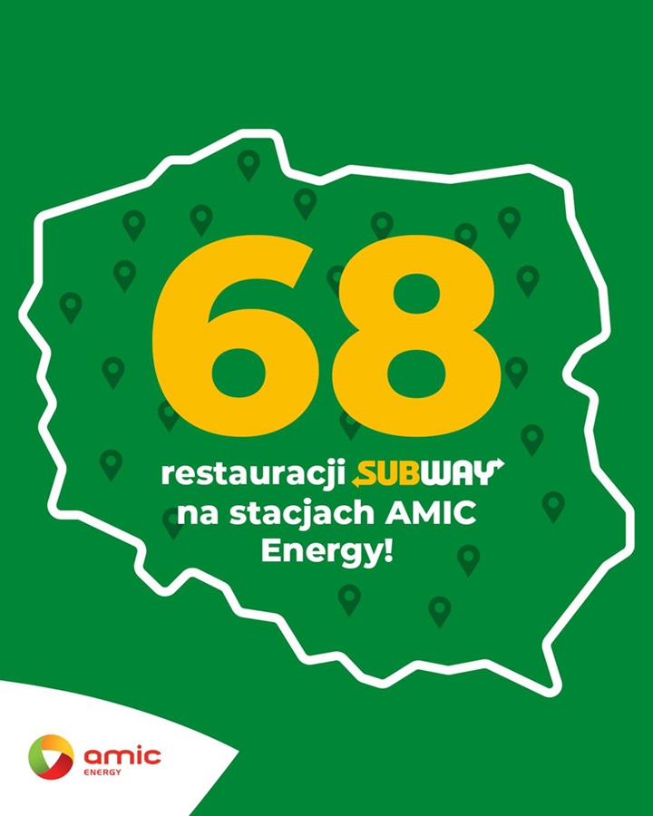Мережа AMIC Energy в Польщі збільшила до 68 кількість ресторанів Subway на своїх заправних станціях. Про це компанія повідомила на своїй сторінці у FaceBook.