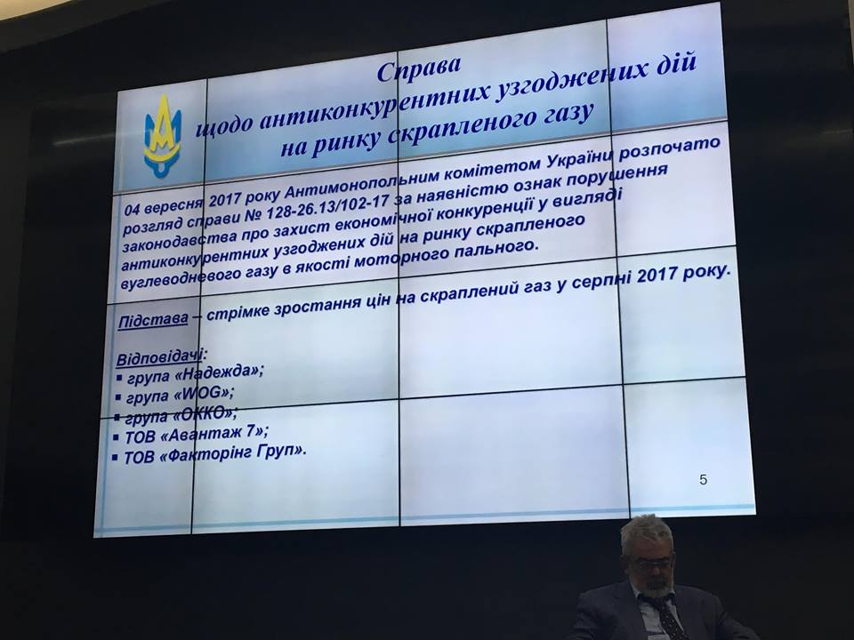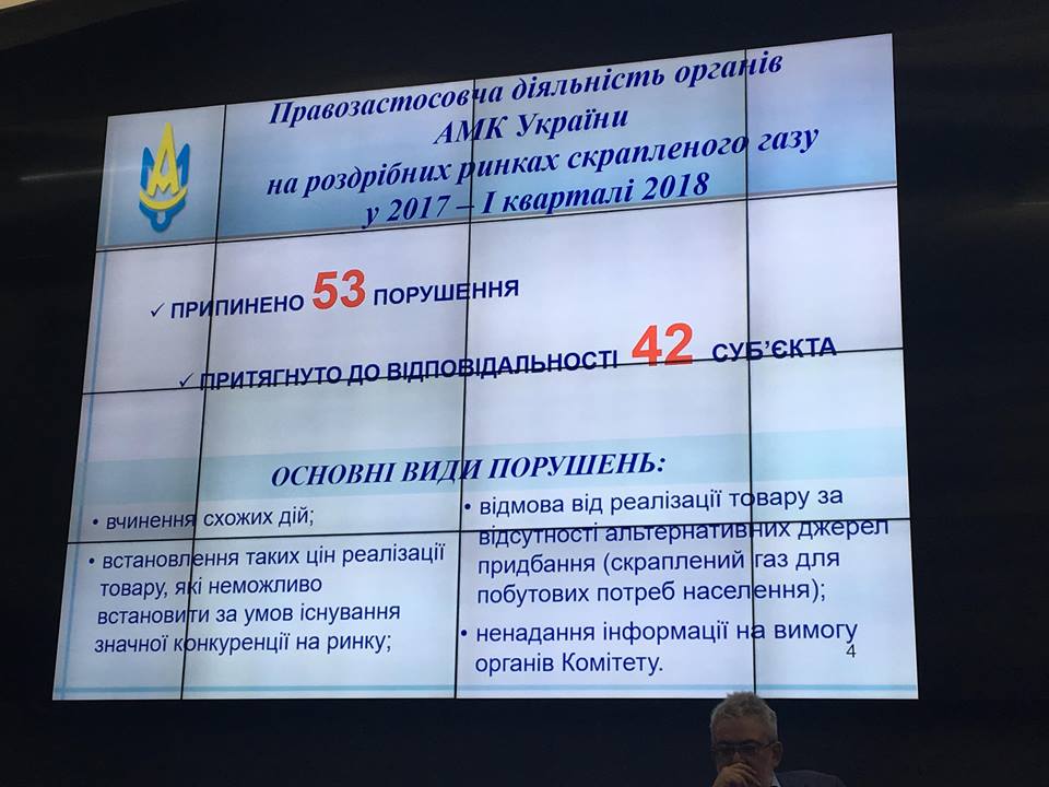 Во время выступления на Congress ULPGA 2018 уполномоченный АМКУ рассказал, что уже проходили слушания закрытого характера при участии компаний фигурантов, так называемого "газового дела":