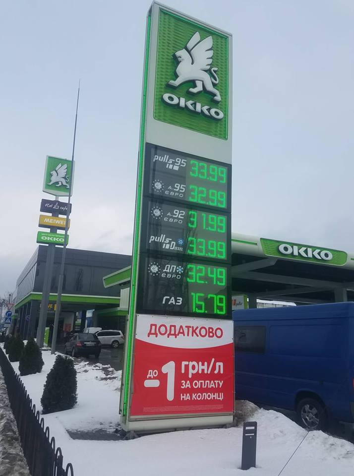 На столичный АЗС «БРСМ-Нафта», а также «БАРС», автогаз подешевел до 14,99 грн/л. На станциях KLO в Киеве газ подешевел на 70 коп./л, до 15,69 грн/л, а на ОККО – на 20 коп./л, до 15,79 грн/л.