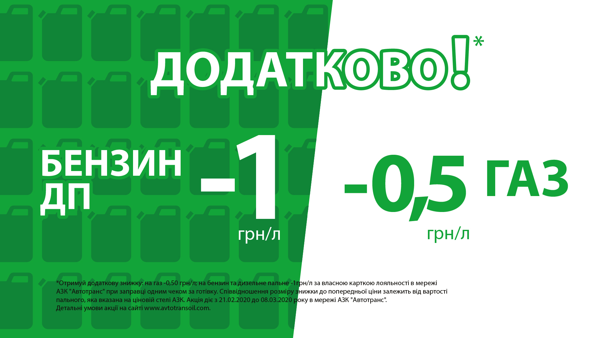 «Получайте дополнительную скидку на бензины и дизельное топливо-1 грн / л, ГАЗ -0,50 грн/л» по собственной дисконтной картой программы лояльности сети АЗК «Автотранс» при заправке за наличные», - отметили в компании.