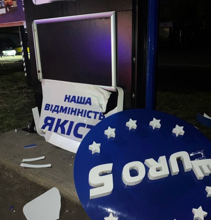 Як видно на оприлюднених компанією світлинах, найбільше постраждала стела, але також було пошкоджено приміщення крамниці.