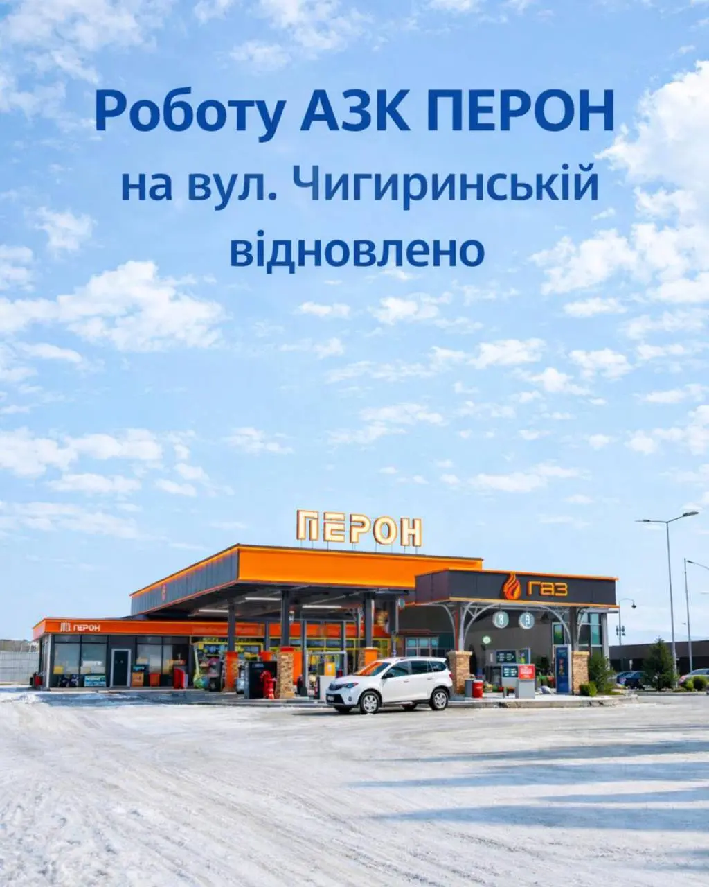 АЗК «Перон» на вул. Чигиринській у Черкасах отримала пошкодження в результаті атаки російських ударних безпілотників в ніч з 1 на 2 лютого і була тимчасово закрита для відновлювальних робіт.