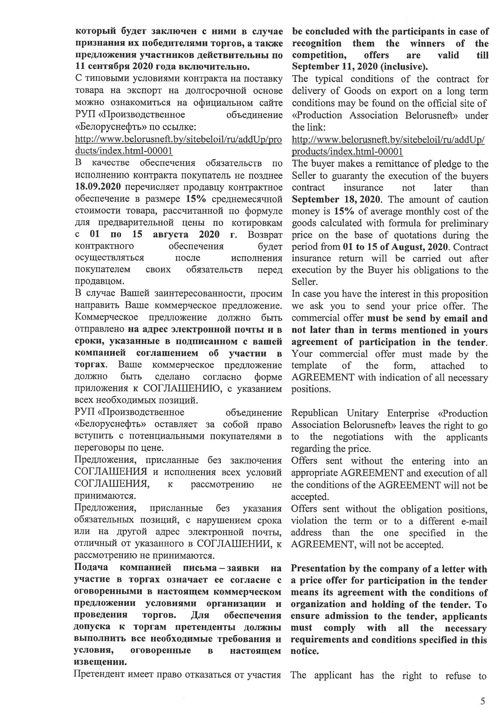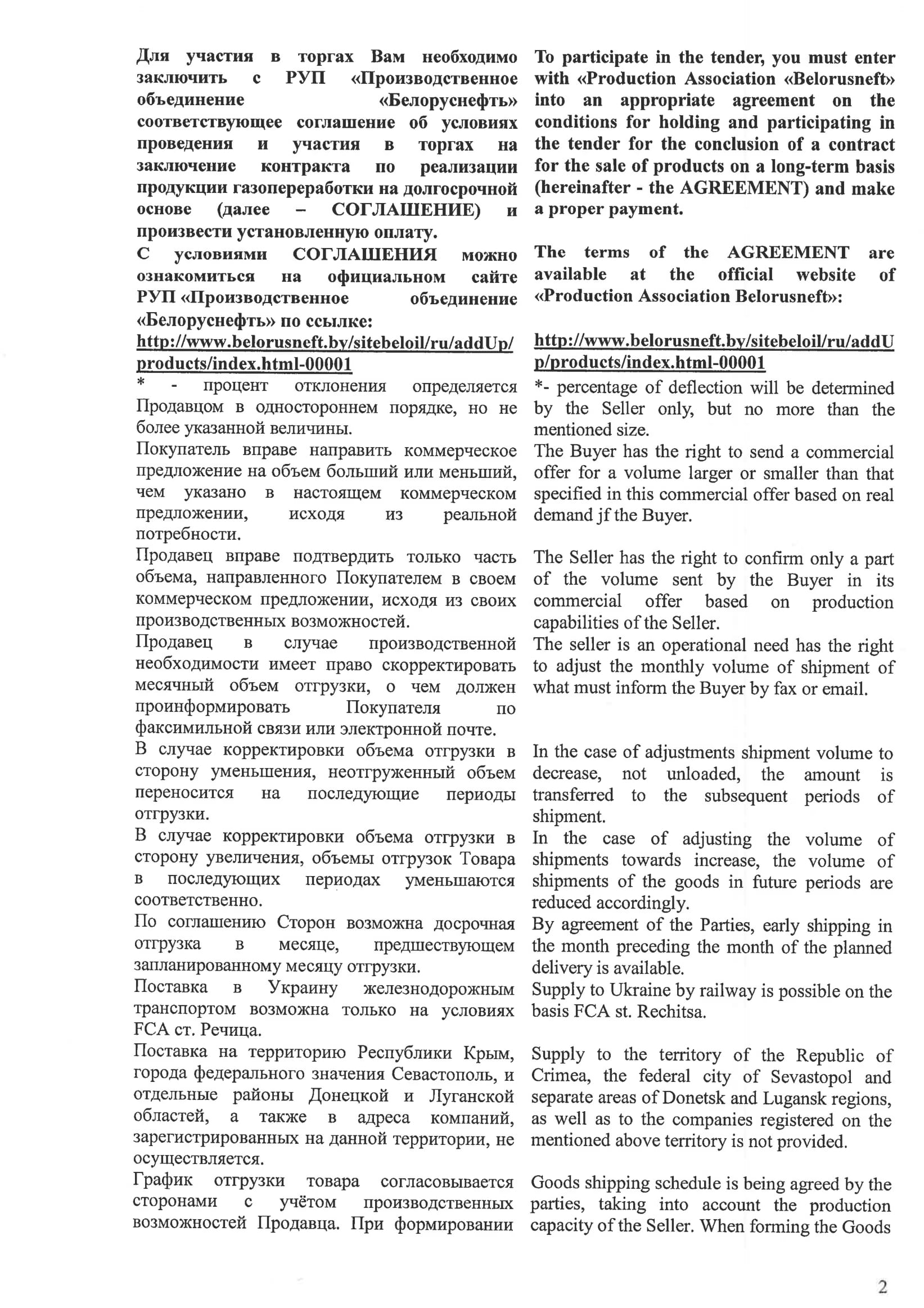 Об этом говорится в коммерческом предложении ПО «Белоруснефть», которым располагает НефтеРынок.