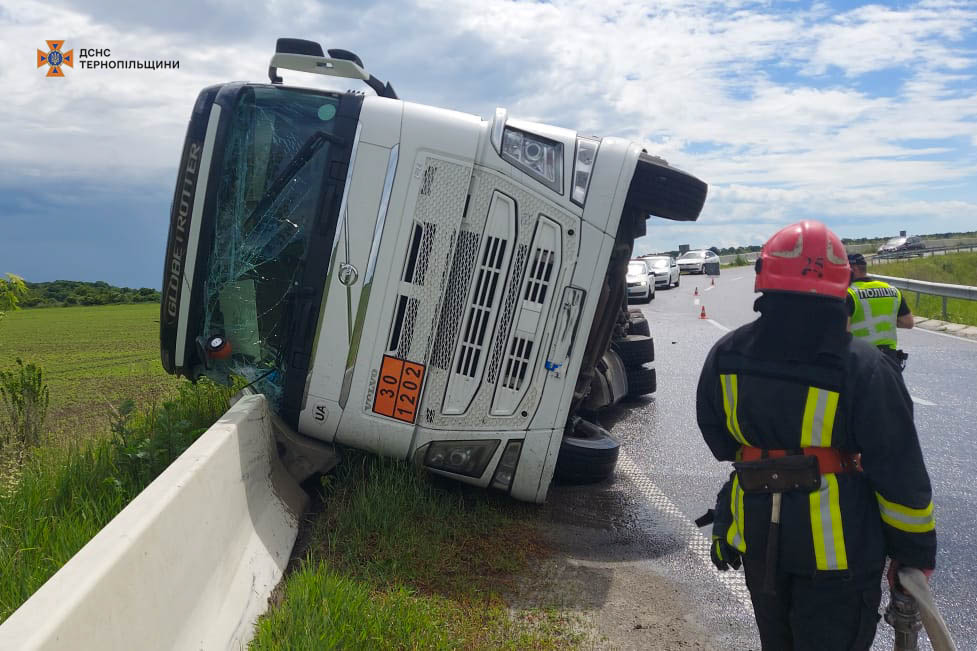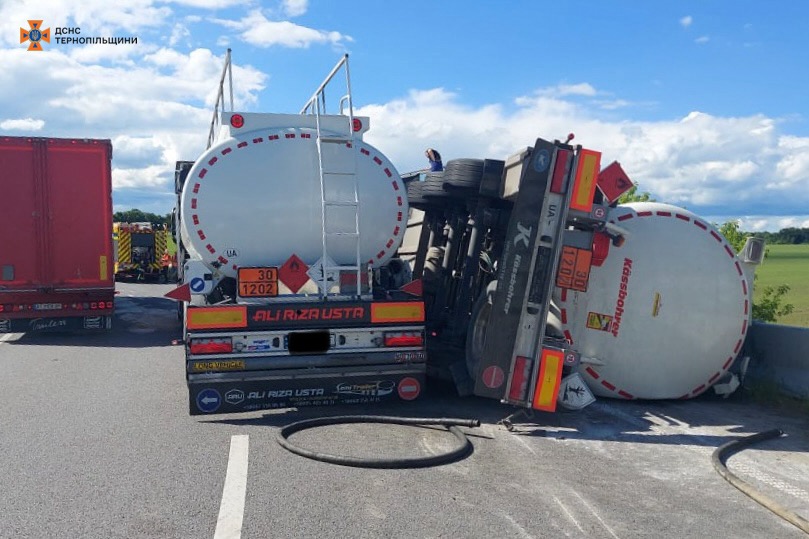 На місце події було направлено чергове відділення 25 ДПРП 12 ДПРЧ (селище Микулинці). По прибутті встановлено, що паливозаправник перевозив 30 тонн дизпального, розповіли в ДСНС, додавши, що витоку нафтопродуктів з цистерни не було. Водночас був незначний витік пального з самого сідельного тягача.