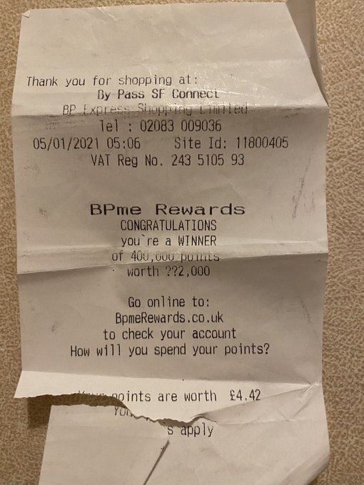 Сотни клиентов BP, которым ошибочно сказали, что они могут потребовать бонусные баллы на сумму 2 000 фунтов стерлингов, теперь получат выплаты. Компания приняла решение через несколько недель после того, как клиентам вручили чеки, в которых говорилось, что они выиграли призовые баллы на тысячи фунтов из-за технической ошибки. В квитанциях говорилось, что они выиграли 400 000 призовых баллов BP на сумму 2 000 фунтов стерлингов в рамках рекламной акции «Заправляй свой год».