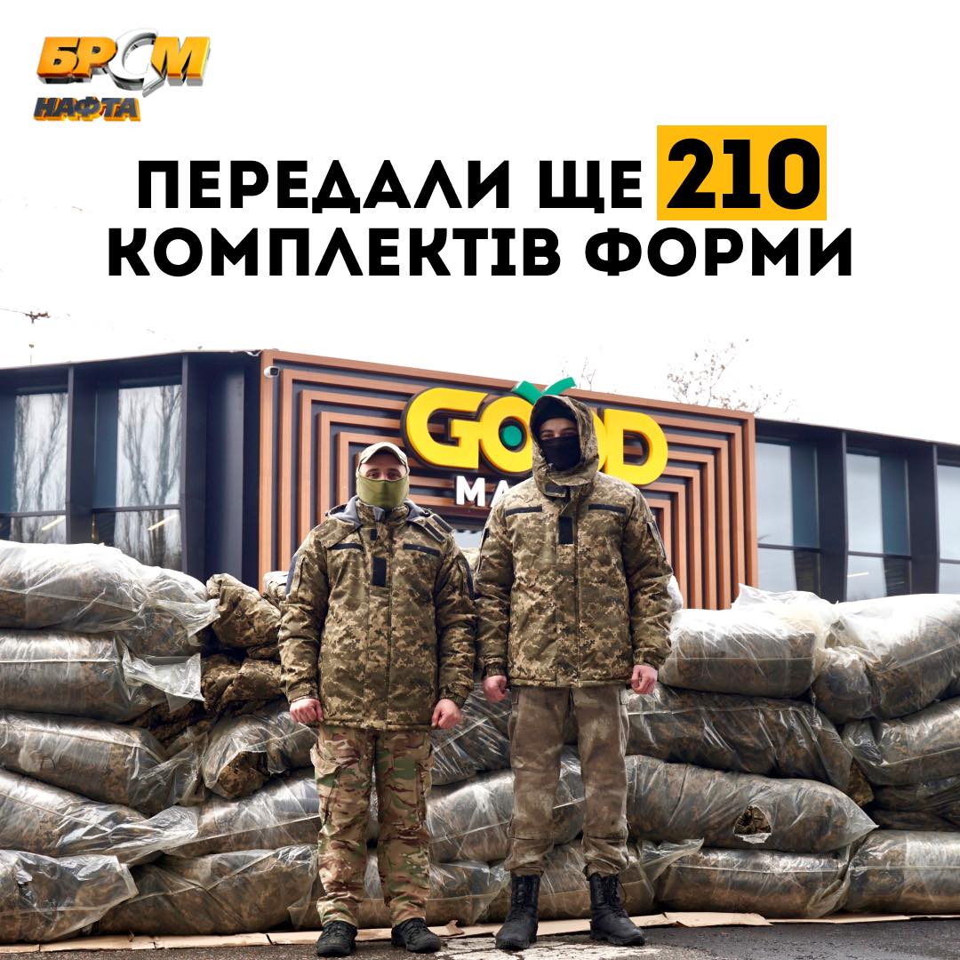 Мережа «БРСМ-Нафта» передала військовим ще 210 комплектів зимового одягу, повідомила компанія на своїй сторінці в FaceBook.