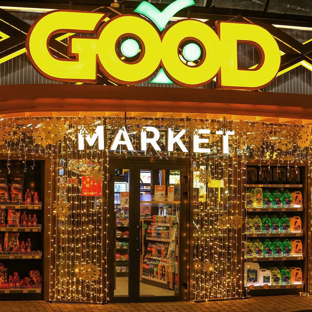 Також на станції працює крамниця GoodMarket, де можна придбати різноманітні супутні товари, в тому числі свіжу піцу та хліб власного приготування.