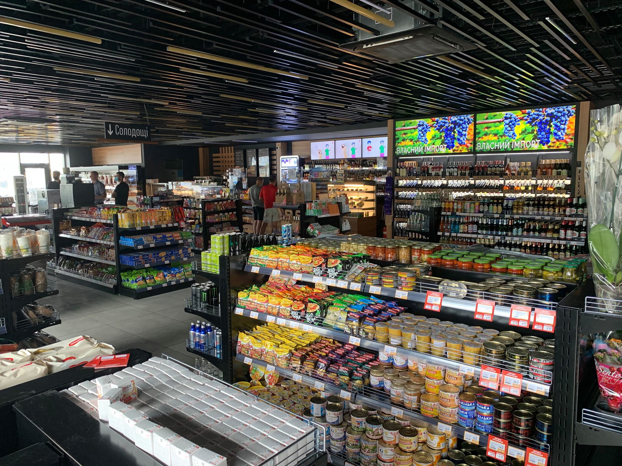 В супермаркете есть традиционные продукты бакалеи, молочные продукты, хлебобулочные изделия, широкий ассортимент бытовой химии (и автохимии), напитки, включая вина собственного производства Viticcio.