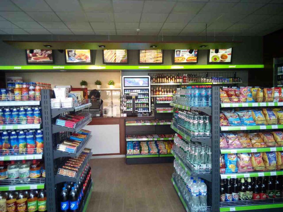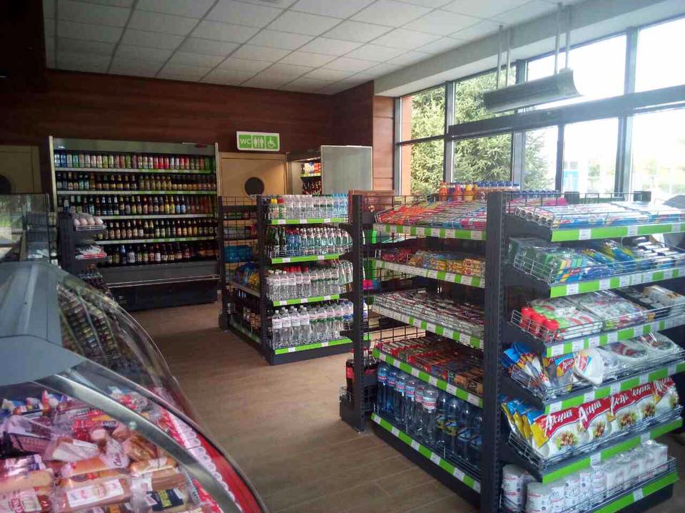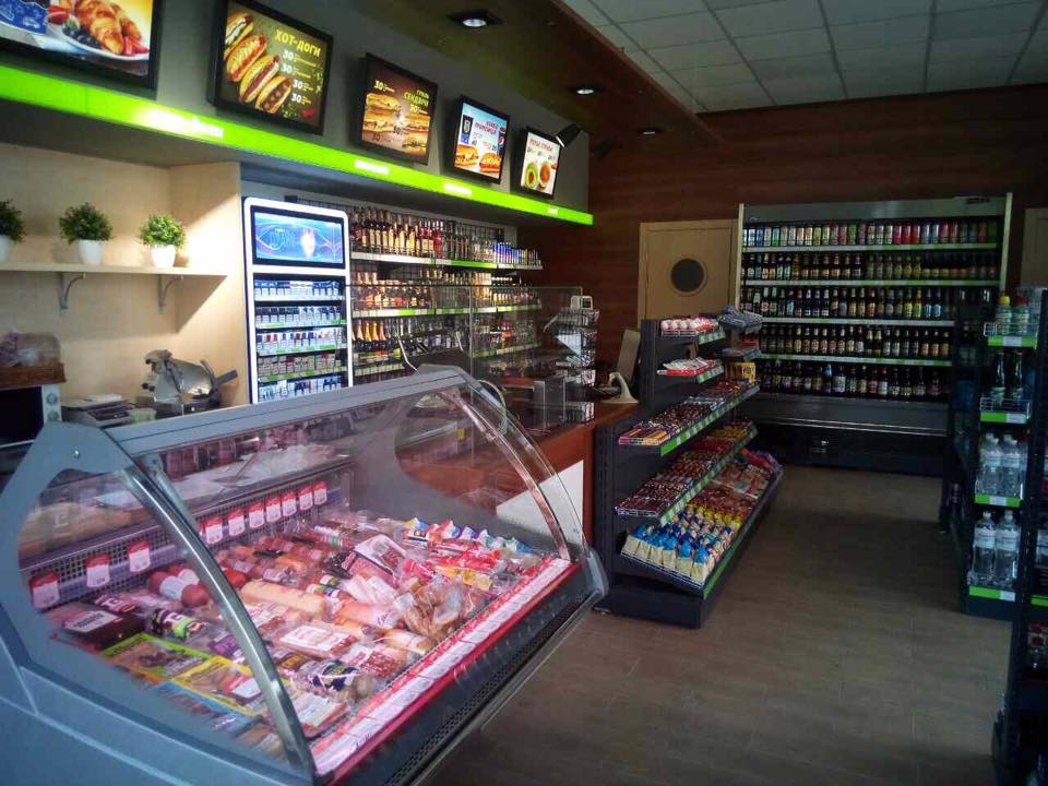 На территории АЗС есть широкий выбор гастрономии, а также возможность купить кофейные напитки и сэндвичи.