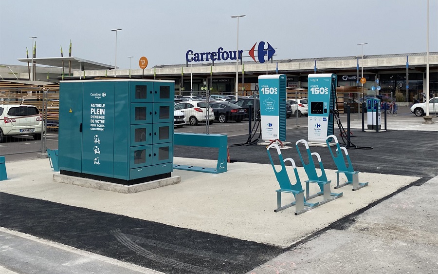У березні 2021 року Carrefour оголосила, що має намір встановити 2 тис. зарядних станцій на стоянках біля своїх гіпермаркетів до 2023 року. Згідно з повідомленням Carrefour, на станції постачатиметься електроенергія з відновлюваних джерел.