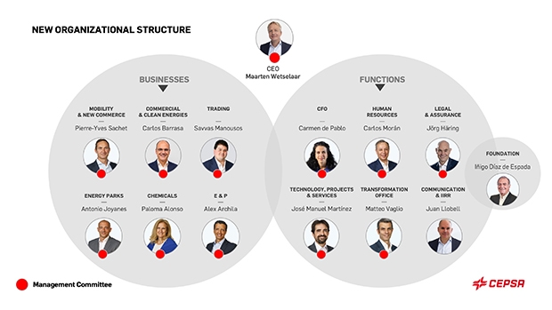 Маартен Ветселаар, генеральный директор Cepsa с 1 января этого года, реорганизовал структуру компании, определив два новых направления деятельности, ориентированных на клиентов в сфере энергетики: «Мобильность и новая коммерция» и «Коммерческая и чистая энергия». Перерабатывающий бизнес становится бизнесом «Энергетических парков» наряду с существующими направлениями разведки и добычи, химической промышленности и торговли.
