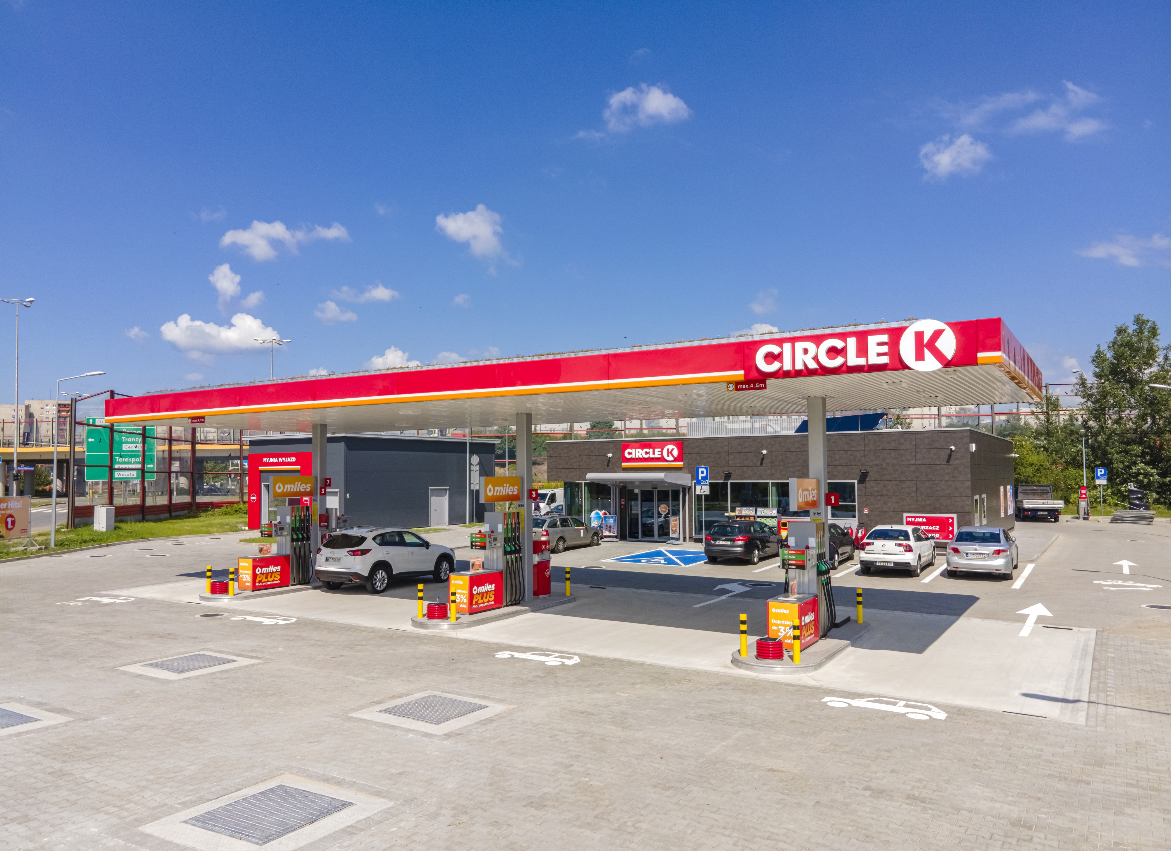 Новейшая станция Circle K в Варшаве оснащена 5 ТРК, с возможностью дозаправки 5 видами топлива, включая топливо премиум-класса с улучшенными параметрами: miles® 95, miles® diesel, milesPLUS® diesel, miles® 98 oraz LPG SupraGaz.