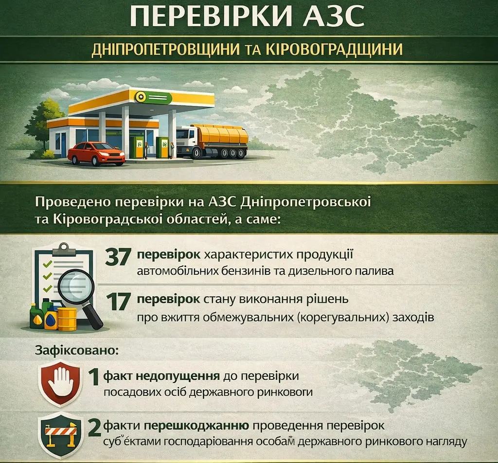 Протягом 2025 року екологи здійснили перевірки характеристик пального на АЗС Дніпропетровської та Кіровоградської областей і винесли 113 рішень про обмеження.