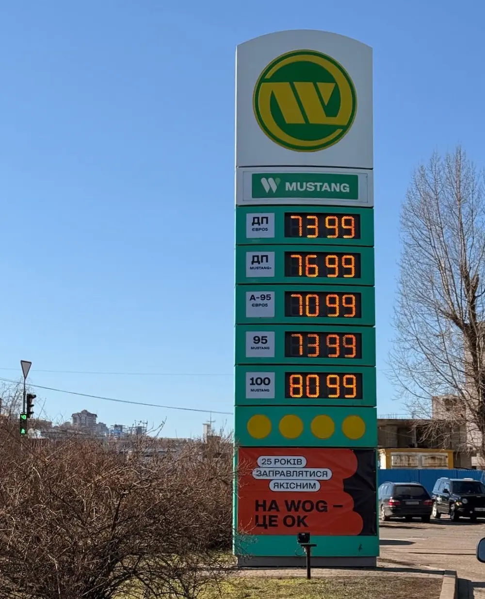 У суботу, 7 березня, ціни на АЗС продовжили зростати. В мережах OKKO i WOG ціна звичайного і преміального дизпального підвищилася на 3 грн/л – до 73,99 грн/л і 76,99 грн/л відповідно.