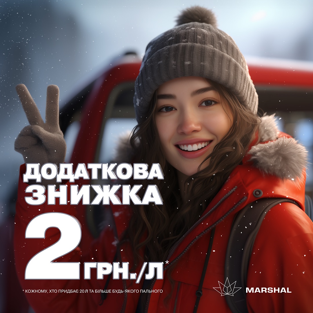Мережа АЗС Marshal до Різдва надає 2 грн/л знижки на все пальне додатково до програми лояльності. Про це компанія повідомила на своїй сторінці у FaceBook.