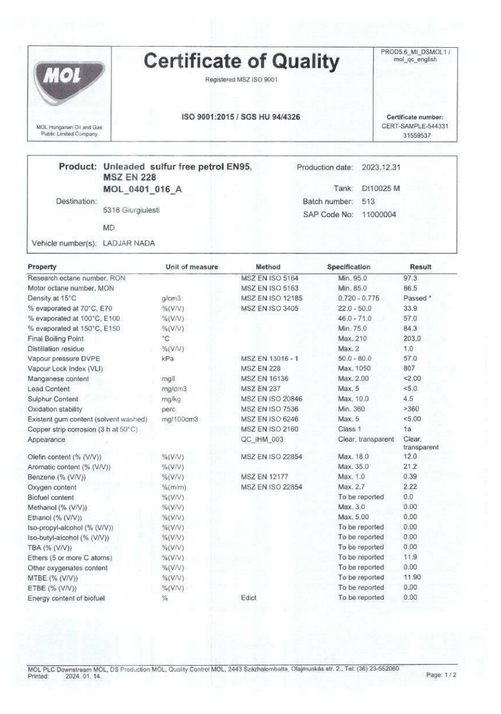 Так, за спостереженнями НафтоРинку, вперше отримано угорський бензин з п. Джурджулешти (Молдова). За даними видання, європейський трейдер завантажив на баржу 1,8 тис. т бензину А-95 з НПЗ MOL, що біля Будапешту, з яких на перевалці Дунаю українським імпортером «Нафтогаз Ойл Трейдинг» отримано пілотну партію 300 т. Постачання з Джурджулешти відбувалось бензовозами, йдеться у випуску Daily fuels&LPG.