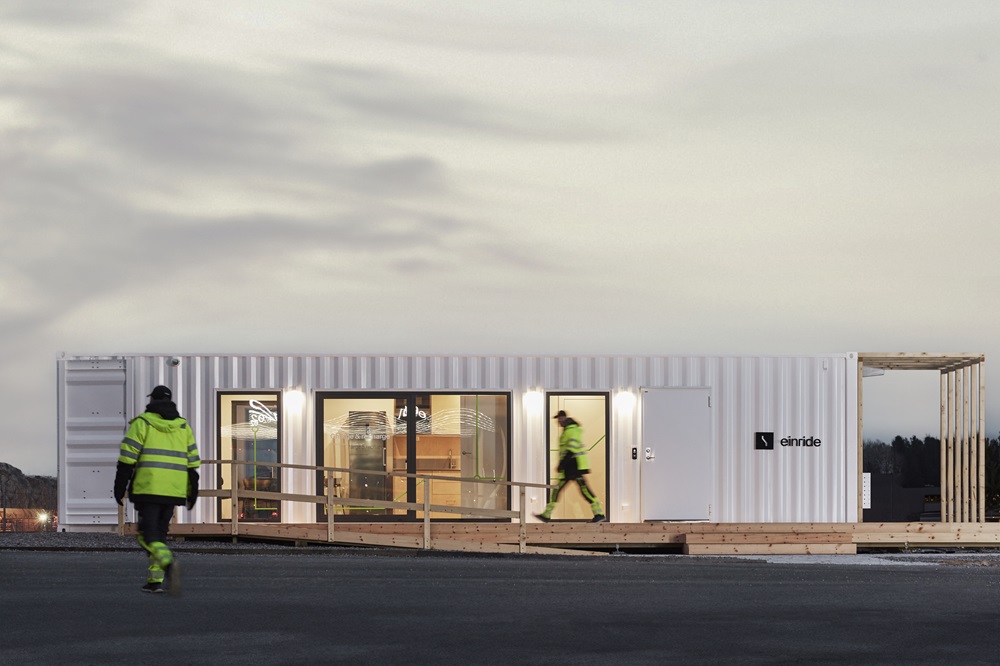Станція Einride Smartcharger знаходиться в Розерсберзі, Швеція. Вона збудована у співпраці з Polar Structure і знаменує собою початок розгортання зарядної мережі Einride у Швеції та інших країнах світу.