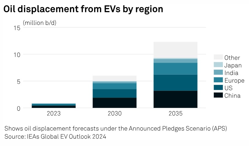 Згідно з базовим сценарієм, до 2035 року електровари витіснять 11 млн барелів на добу сирої нафти, прогнозує МЕА, виходячи з поточної політики в США, Європі та Китаї. Якщо ж країни повністю виконають всі свої зобов'язання в галузі енергетики та клімату, кількість нафти, заміщеної електромобілями, зросте до 12 млн бар./добу, очікує МЕА.